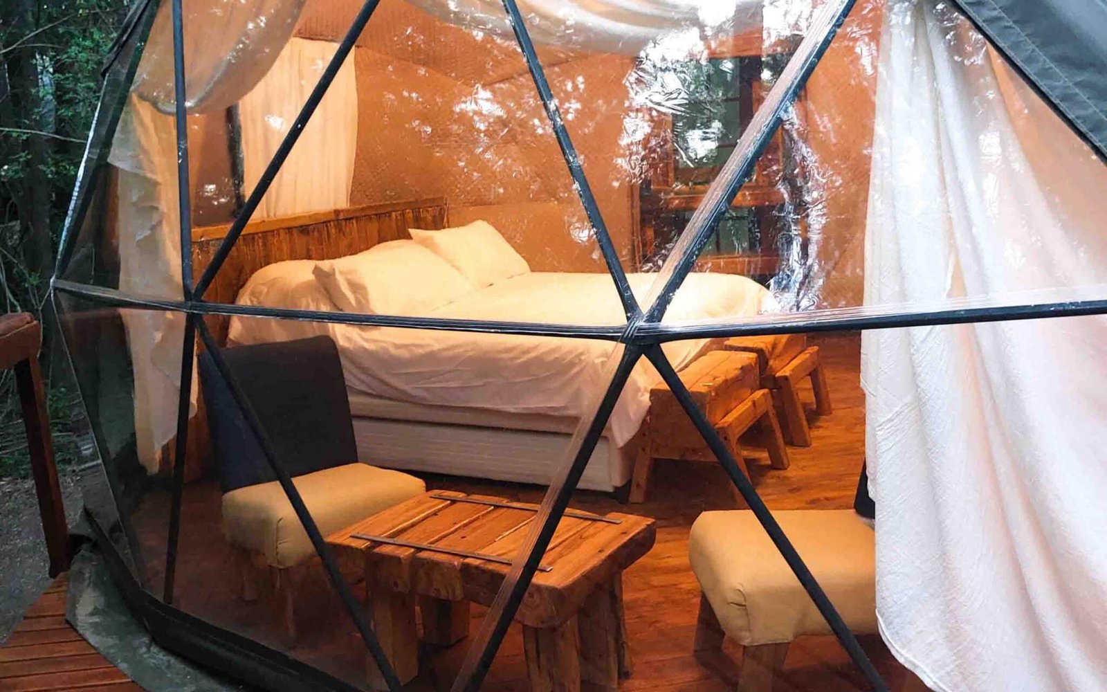 “Nuestros domos son construcciones geodésicas que optimizan el uso de las energías. Donde se puede disfrutar de dormir en el corazón de la naturaleza con todas las comodidades”, describen. Cada domo tiene características distintivas en su interior, ya que ninguno es igual al otro. La idea nació de los mismos dueños que poseen los campos de la estancia Santa Teresa, su lugar en el mundo. Aunque ven el potencial del paraíso escondido, al mismo tiempo quieren respetar su esencia, devolviéndole al lugar todo lo que les ha dado. “Esto se logra con un emprendimiento sustentable con el menor impacto ambiental”, aseguran.