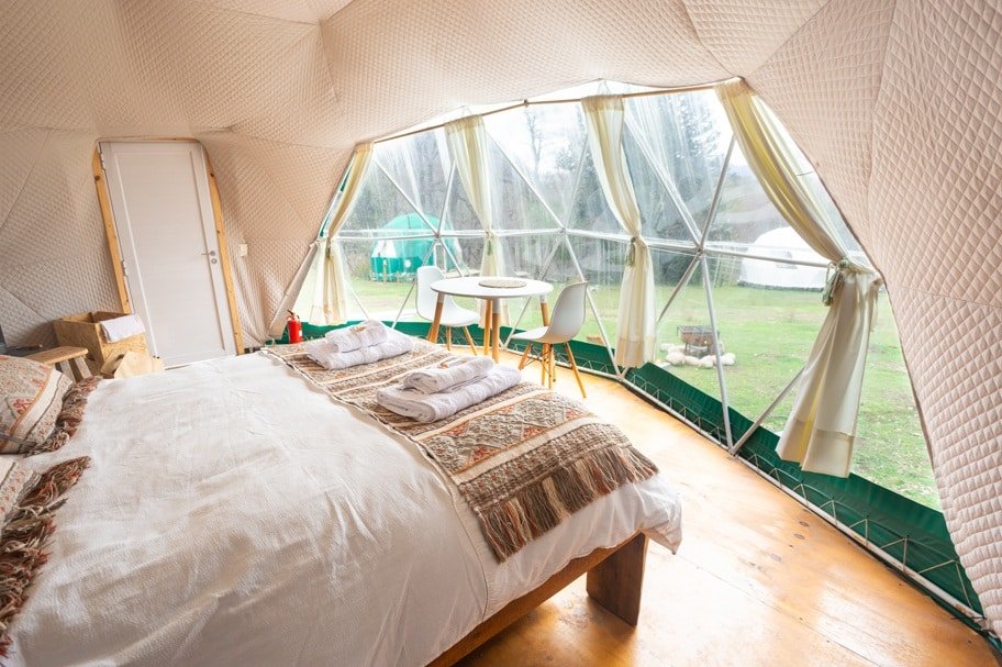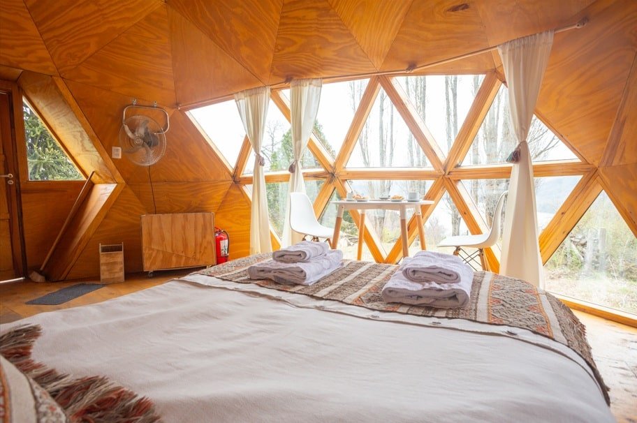 Cada espacio cuenta con su privacidad. Están rodeados de naturaleza, animales y una vista única del bosque, lago Lacar y montañas q rodean al Domo. Pudiendo desde una confortable cama ver tanto el amanecer detrás de los Pehuenes, Robles y Cipreses, como así también seguir el movimiento de la Luna y las estrellas. Escuchar los sonidos del bosque, vivir la experiencia de estar acampando en la naturaleza, pero disfrutando de nuestras instalaciones.