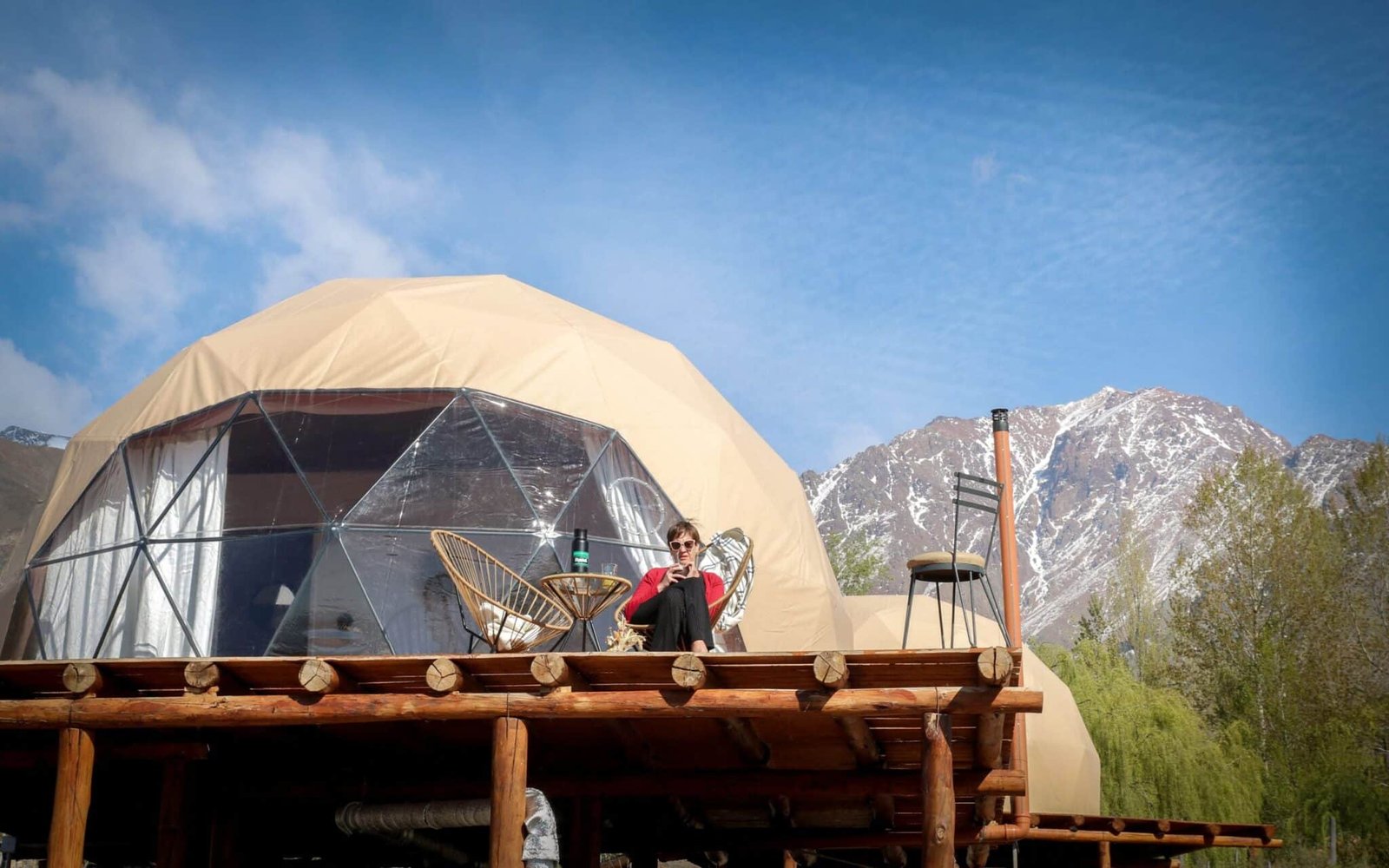 Tambien, los domos poseen cocina, anafe, y utensilios de cocina, mesa con sillas y distintos espacios al aire libre para disfrutar la naturaleza, livings outdoor con alrededor del fogonero con vista a la montaña y al dique potrerillos, parrillas y mesas.