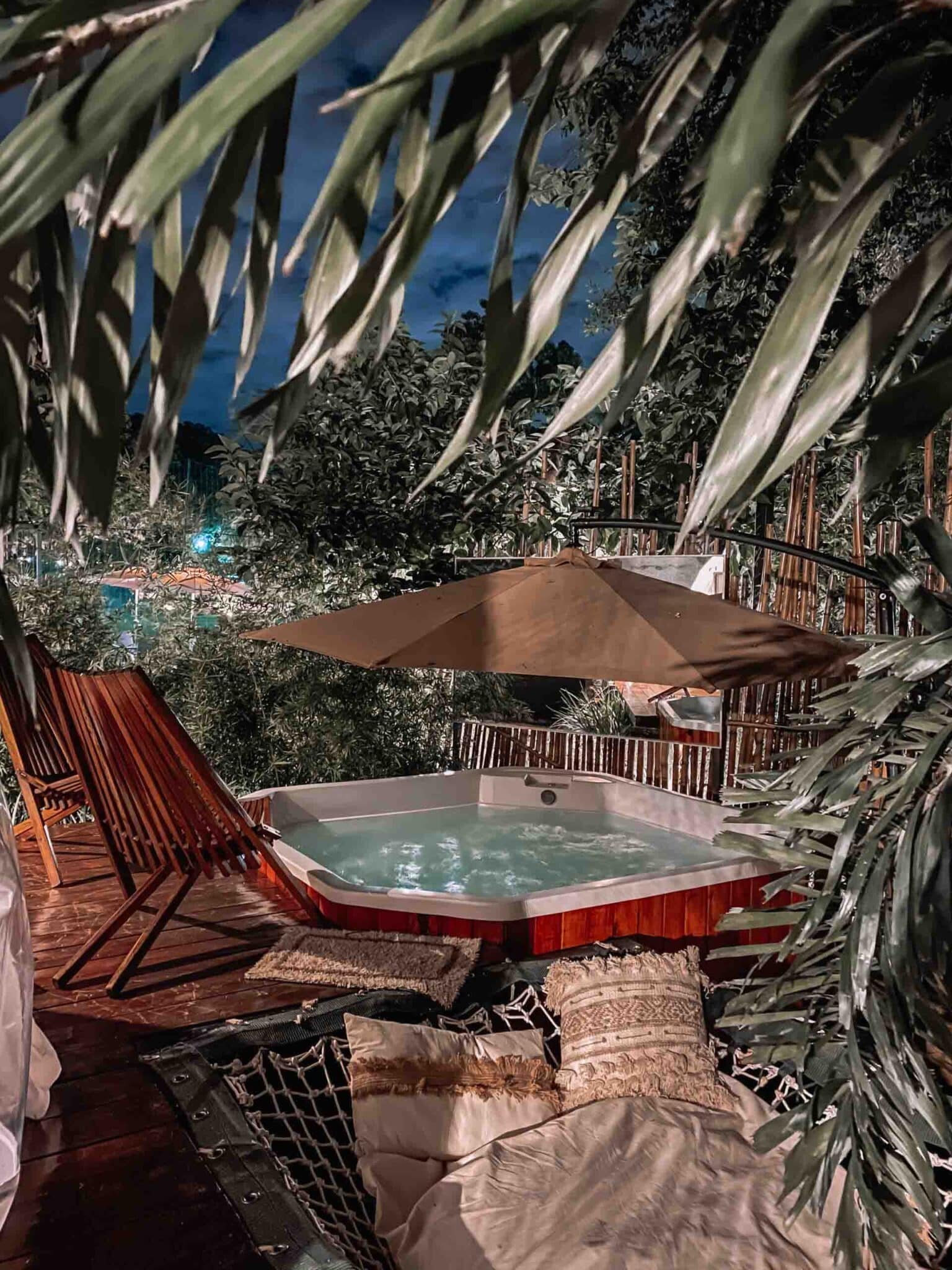 El Domo cuenta con capacidad para 2 adultos y hasta 2 niños. Con amplia cama matrimonial, jacuzzi térmico privado, aire acondicionado, calefacción, wifi, barra de sonido con luces, heladera, baño privado. Incluye utensilios básicos de cocina, y elementos como licuadora, mixtera, cafetera, horno eléctrico, microondas y más.
